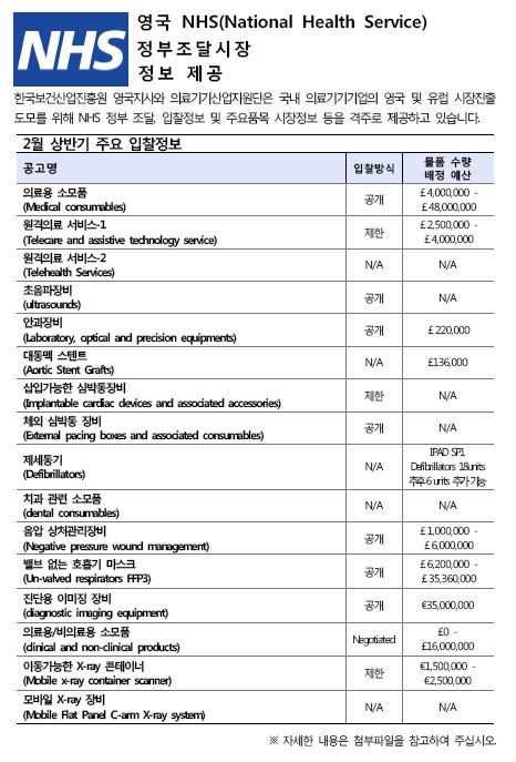 영국 NHS 정부조달시장 정보제공 (2월 상반기)