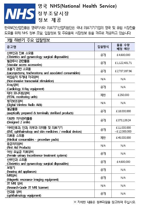 영국 NHS 정부조달시장 정보제공 (3월 하반기)