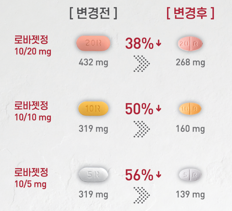 이와 함께 로바젯은 10/5밀리그램, 10/10밀리그램, 10/20밀리그램 등 3가지 제품 모두 기존 제품 대비 중량을 각각 56%, 50%, 38% 줄였다. 국내 출시된 동일성분 약물 가운데 중량이 제일 적다.
