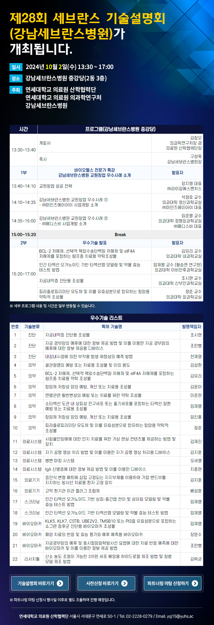 [안내] 제28회 세브란스 기술설명회(강남세브란스병원)