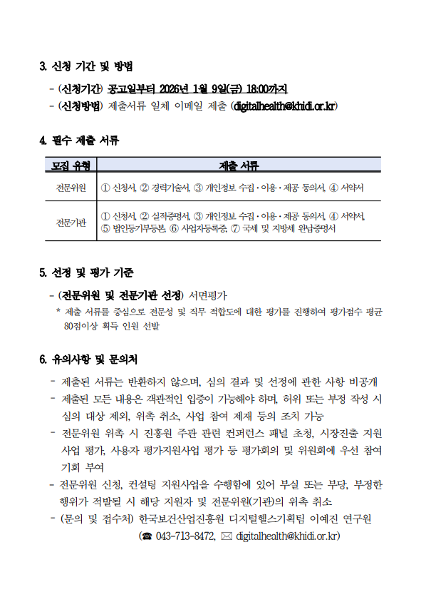 [공고문] 2026년도「디지털 헬스케어 해외진출 전문 컨설팅」지원을 위한 전문위원 및 전문기관 모집 공고.hwpx(92.49KB)