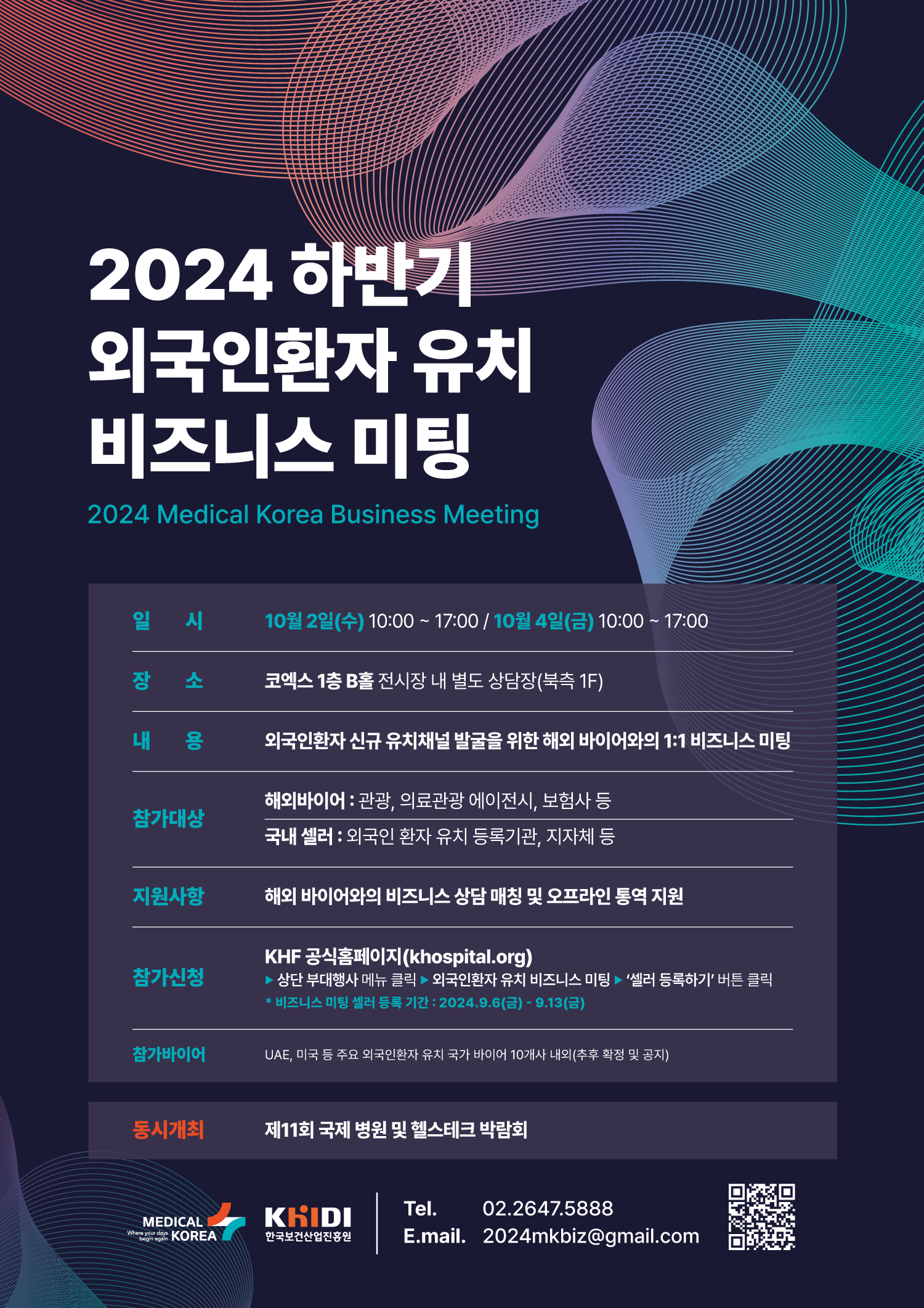 『2024 하반기 외국인환자 유치 비즈니스 미팅』 참가기관 모집(9.6(금)~9.13(금))
