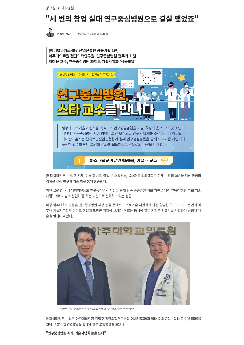연구중심병원, 스타교수를 만나다(아주대학교의료원 박래웅, 김철호 교수)