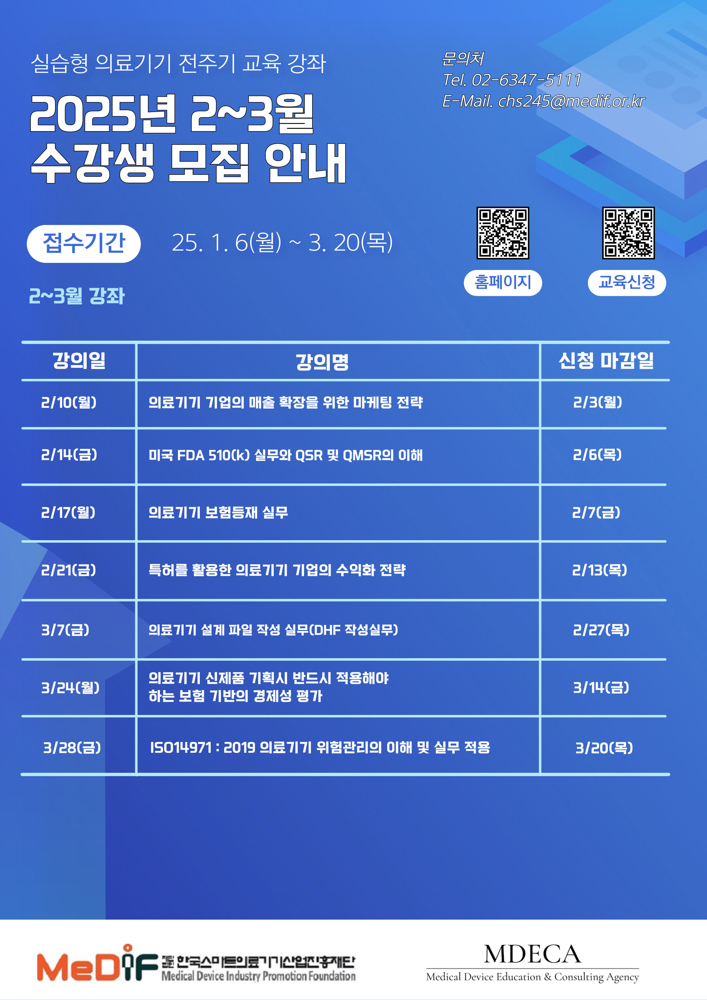 실습형 의료기기 전주기 교육 2~3월 수강생 모집 안내