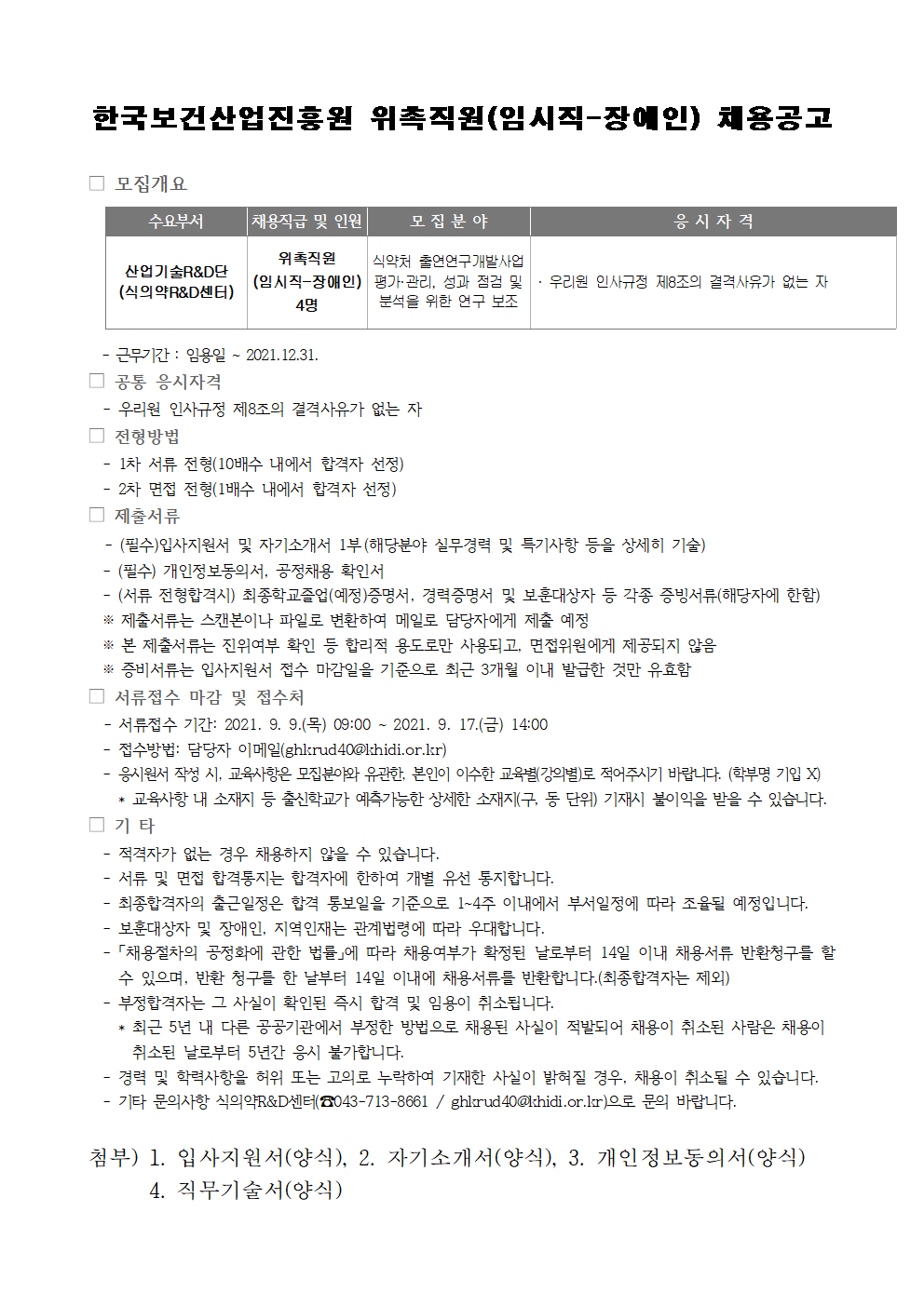 [채용] 한국보건산업진흥원 위촉직원(임시직) 채용공고(~9.15)