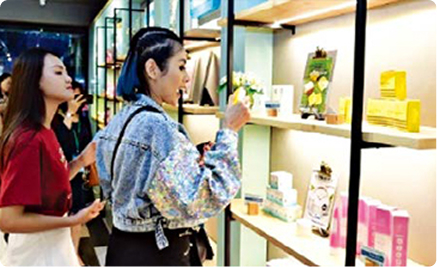 K-Beauty pop-up store in Vietnamlocal visitors looking at Korean products