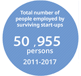 ** Total number of people employed by surviving start-ups in the recent seven years(Year 2011-2017)
