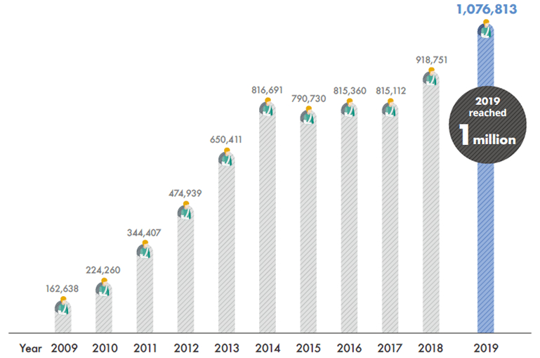 Since 2009 when Korean medical institutions were officially allowed to accept foreign patients, the accumulated number of foreign patients who visited Korea amounted to 7.09 million, while the annual figures reached 1 million in 2019.