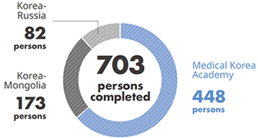 Observation Course (Medical Korea Academy-Global, Korea-Mongolia, Korea-Russia) : completed by 703 persons from 32 countries