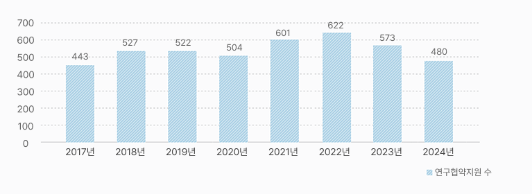 연구협약지원 - 산업체, 교육부, 과학기술정보통신부, 보건복지부, 경기도 등 지자체, 기타국고 산업체 교육부, 과학기술정보통신부 보건복지부 경기도 등 지자체 기타국고 189 169건 90건 17건 15건 -