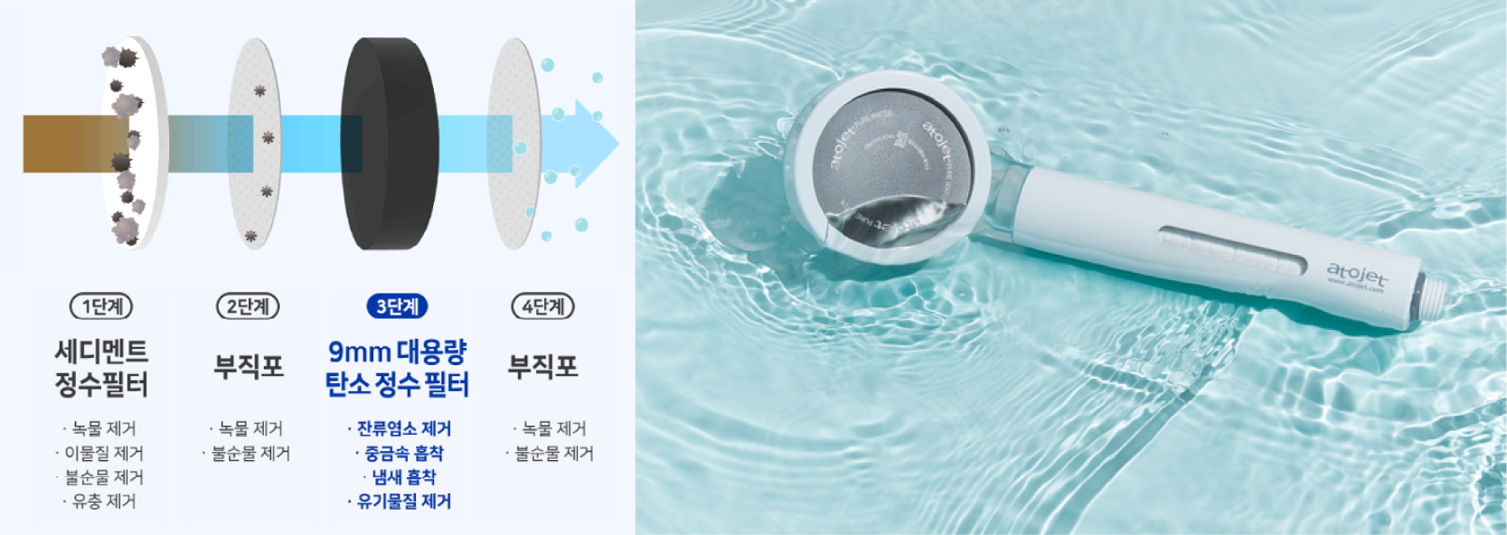 100% 국내 생산 고품질 필터 샤워기 '아토젯'